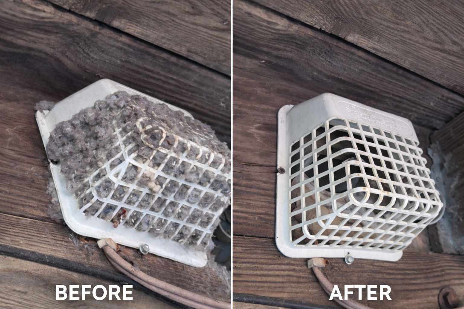 Before and after professional dryer vent cleaning & repair :